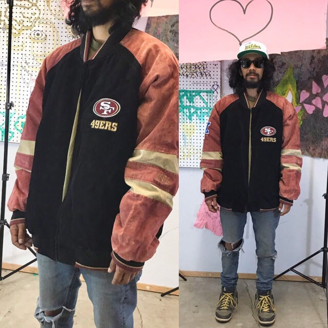 49Ers Leather Jacket / Vintage 90s San Francisco 49ers X Michael Jackson Depop - Shop for san francisco 49ers nfl gear!. Super bowl champions san francisco 49ers vegan leather jacket in size large, amazing craftsmanship and detailing by g iii brand zip front tinkertaylorvintage. Whether you're supporting your team at a game, running errands or working out. Don't pass up the chance to get the perfect nightshirt at the 49ers store. Vintage san fransico 49ers starter jacket size m. Don't worry, your fandom options don't have to end at clothing.